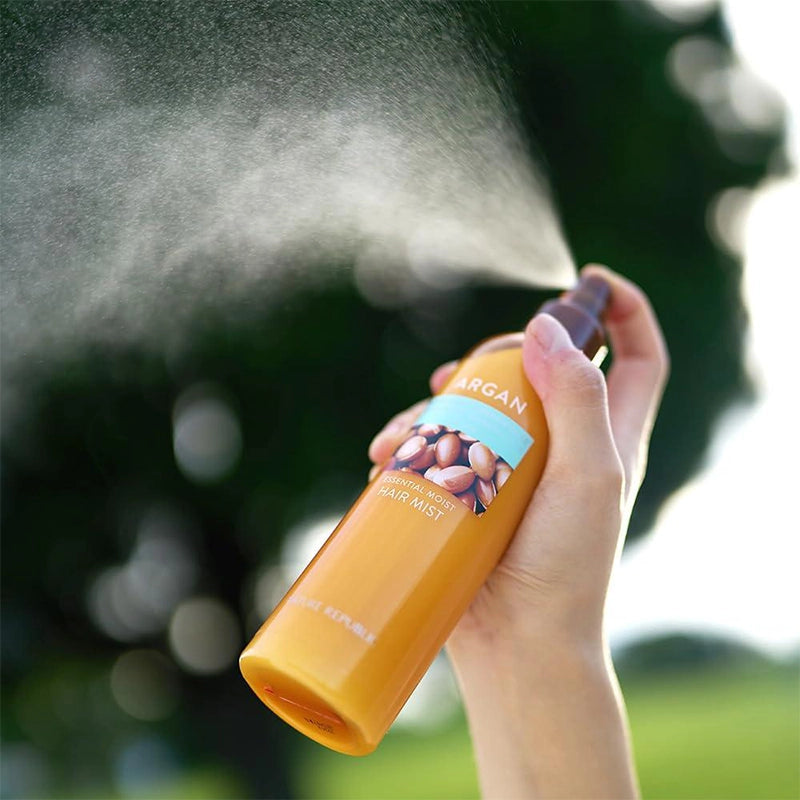 The NATURE REPUBLIC Argan Essential Moist Hair is a moisturizing hair spray that turns dry and fizzy hair into smooth and shine, by instantly providing moisture to hair. Gives hair more volume and moisturizes, as well as providing silky smooth feel afterwards and hydrates damaged hair from straighteners, blow dryers, perms, over dying, and constant sun exposure.