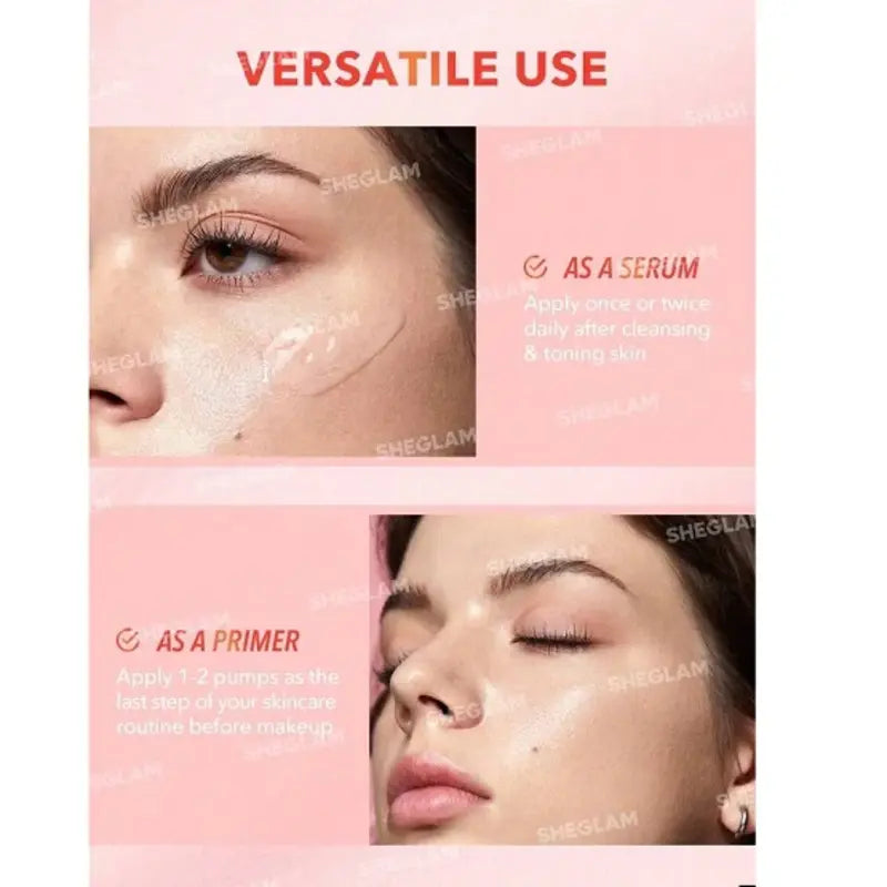 Looking to soothe, moisturize, and brighten your skin? You've come to the right place. Our new SHEGLAM Melon Melt Niacinamide Serum Primer is the perfect glow-boosting pre-makeup solution. Included with niacinamide and watermelon fruit extract, this primer hydrates your skin instantly and over time, revealing a natural, healthy glow. Use it in your existing skincare routine before moisturizing or as a primer before makeup.